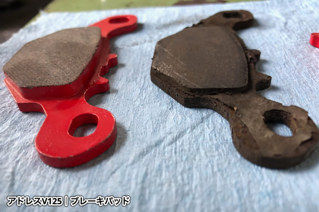 ブレーキフルード交換のついでに、たまたま店にあったデイトナ製 アドレス用 ブレーキパッドに交換。